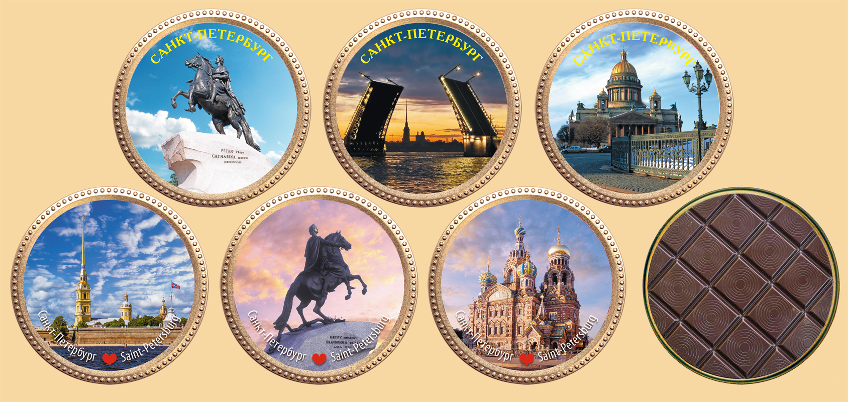 Шоколадная СУВЕНИРНАЯ МЕДАЛЬ ВИДЫ САНКТ- ПЕТЕРБУРГА ( х 24шт)