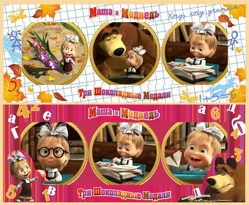 Шоколадный набор молочный (ТРИ МЕДАЛИ МАША И МЕДВЕДЬ) ( х 30шт) ("ПЕРВЫЙ РАЗ В ПЕРВЫЙ КЛАСС")