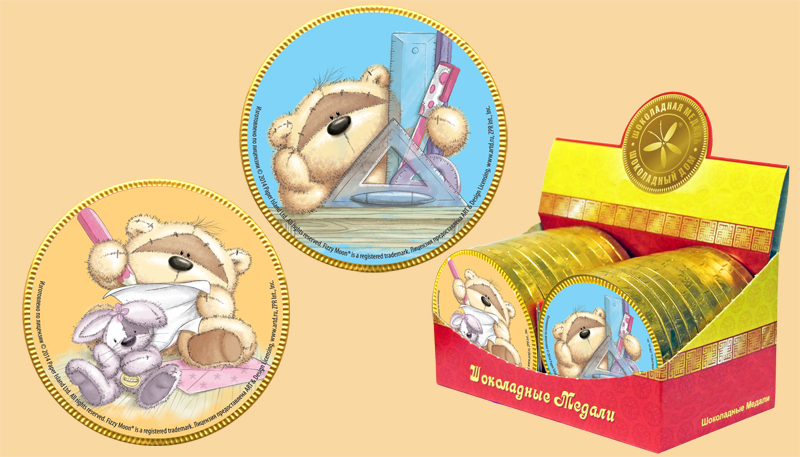 Шоколад фигурный молочный ШОКОЛАДНАЯ МЕДАЛЬ (ФИЗЗИ) (ШКОЛА) (6бл. х 24шт)